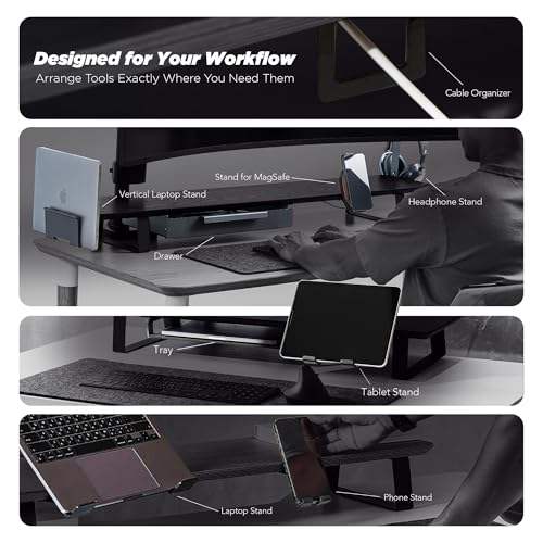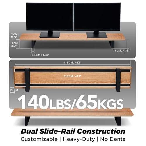 Support d'écran réglable et extensible en bois, grand organisateur de bureau avec rails métalliques coulissants pour tiroir, tablette, téléphone, écouteurs