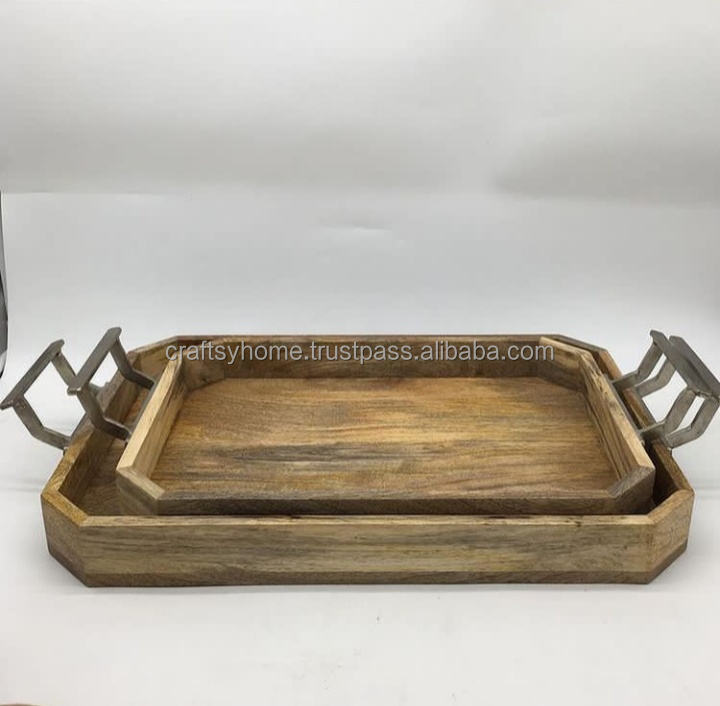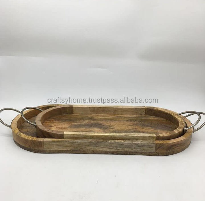 Plateau de service en bois et métal, décoratif, forme personnalisée, qualité supérieure, plat de service durable, plateau de service en bois de longue durée de vie