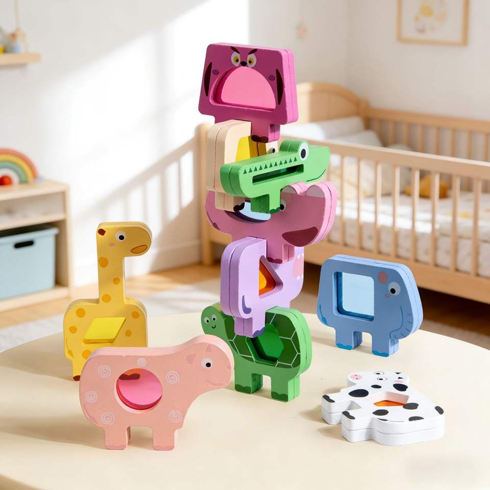 Blocs en bois en forme d'animaux à assortir, jouet éducatif 3D à empiler pour enfants de 4 à 6 ans, blocs de construction unisexes