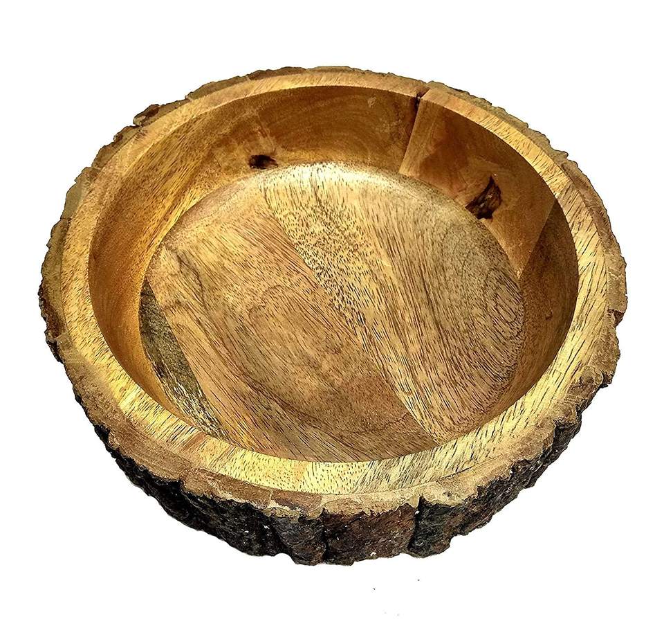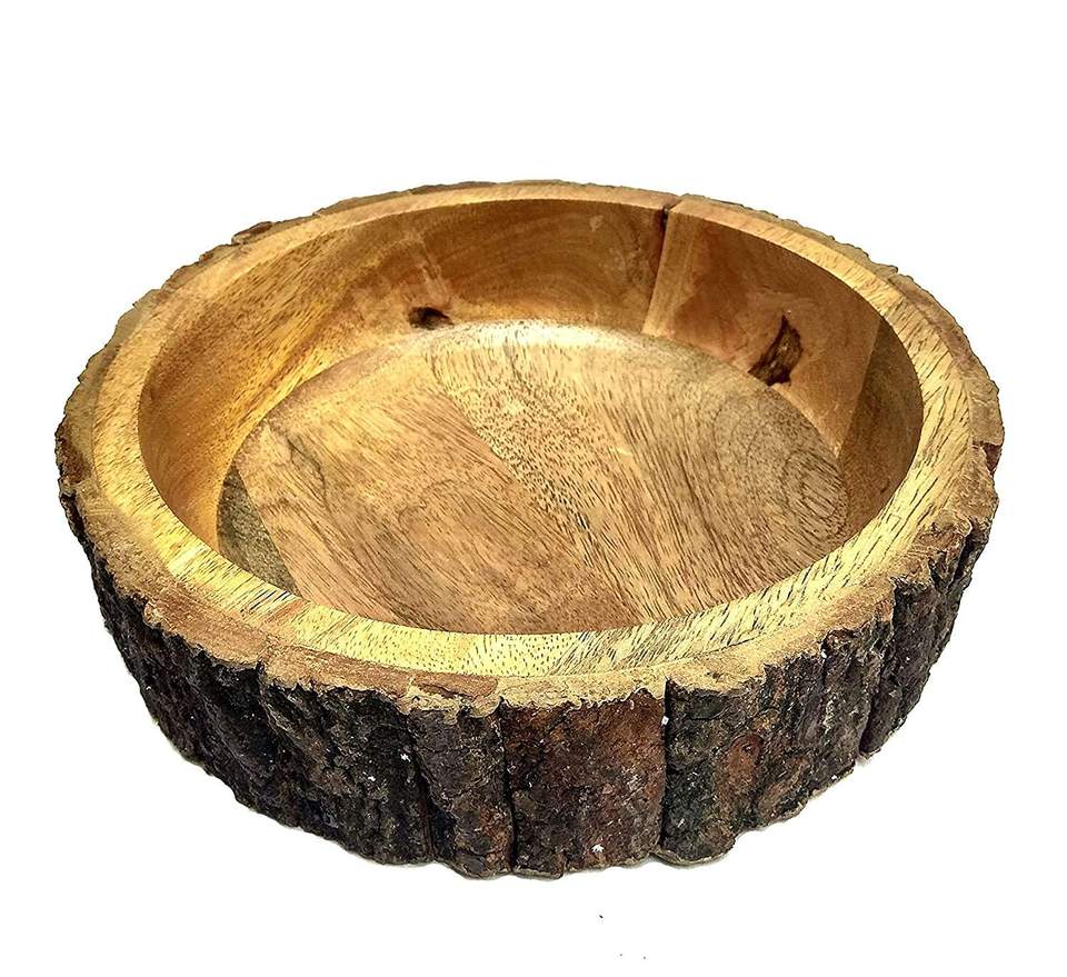 Wooden Bark Design Bowl Handcrafted Natural Wood Decorative & Serving Bowl for Home Décor