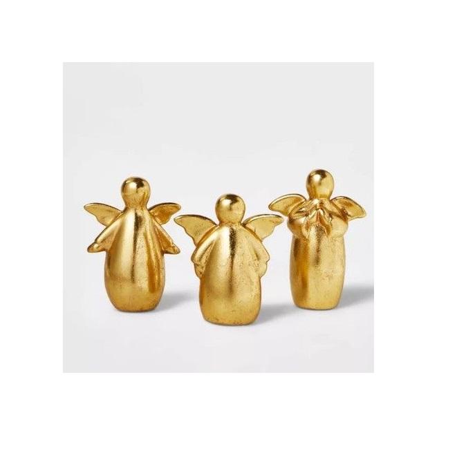 Base en bois Belle fonte d'aluminium Table Top Angel Top Qualité Meilleure vente Golden Shiny Angel
