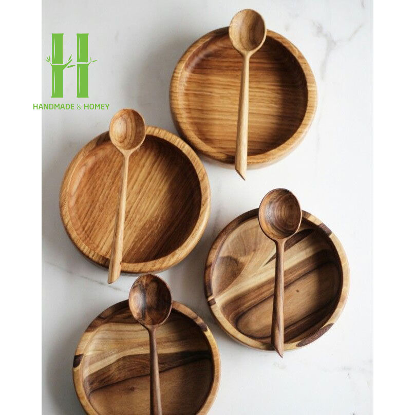 Wooden Bowl Set Salad Serving Bowls Wholesale Tableware Bowl Plate OEM Colors Sizes Custom Packaging From Vietnam Handmade
