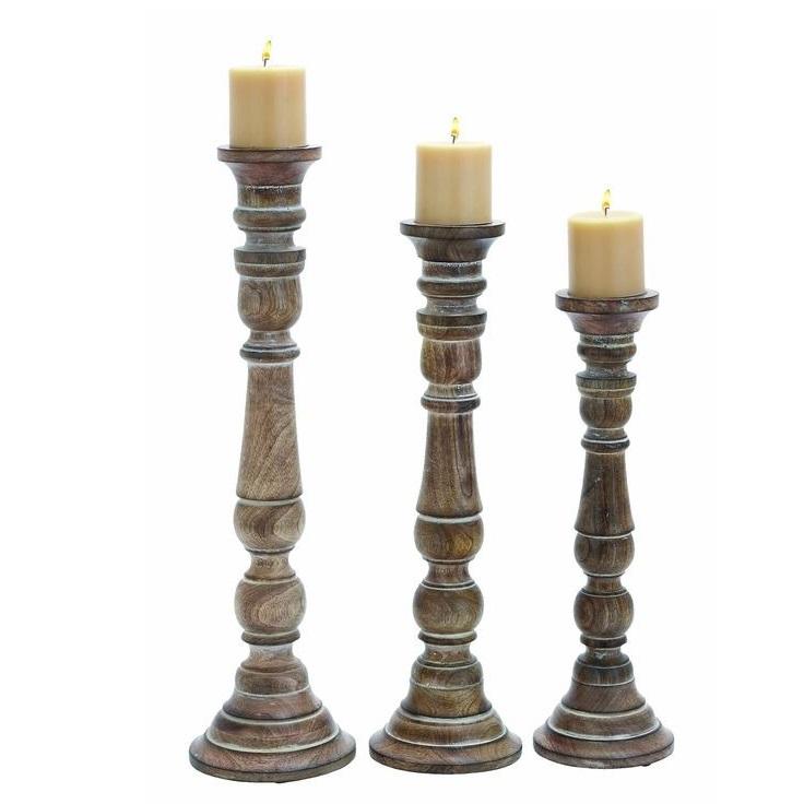 Wooden Candle Holder Antique Design Unique Handmade White Wash Finishing Set of 3 Decorative Lighting for Home Hotel & Office