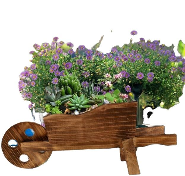 Chariot en bois Pot de fleurs créatif combinaison charnue support de Pot de plante; décoration de jardin ornementale brouette planteur jardin bois