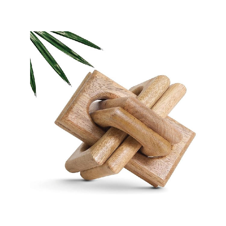 Chaîne en bois décorative pour table basse et étagère | Sculpture artisanale en bois de manguier