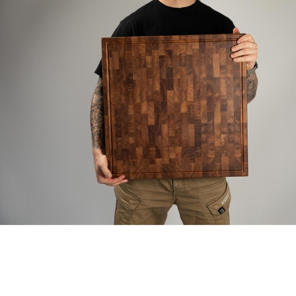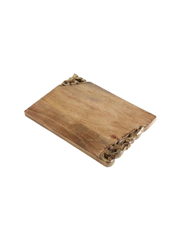 Planche à découper en bois avec des coins au design antique, idéale pour la découpe élégante des légumes et facile à suspendre dans la cuisine