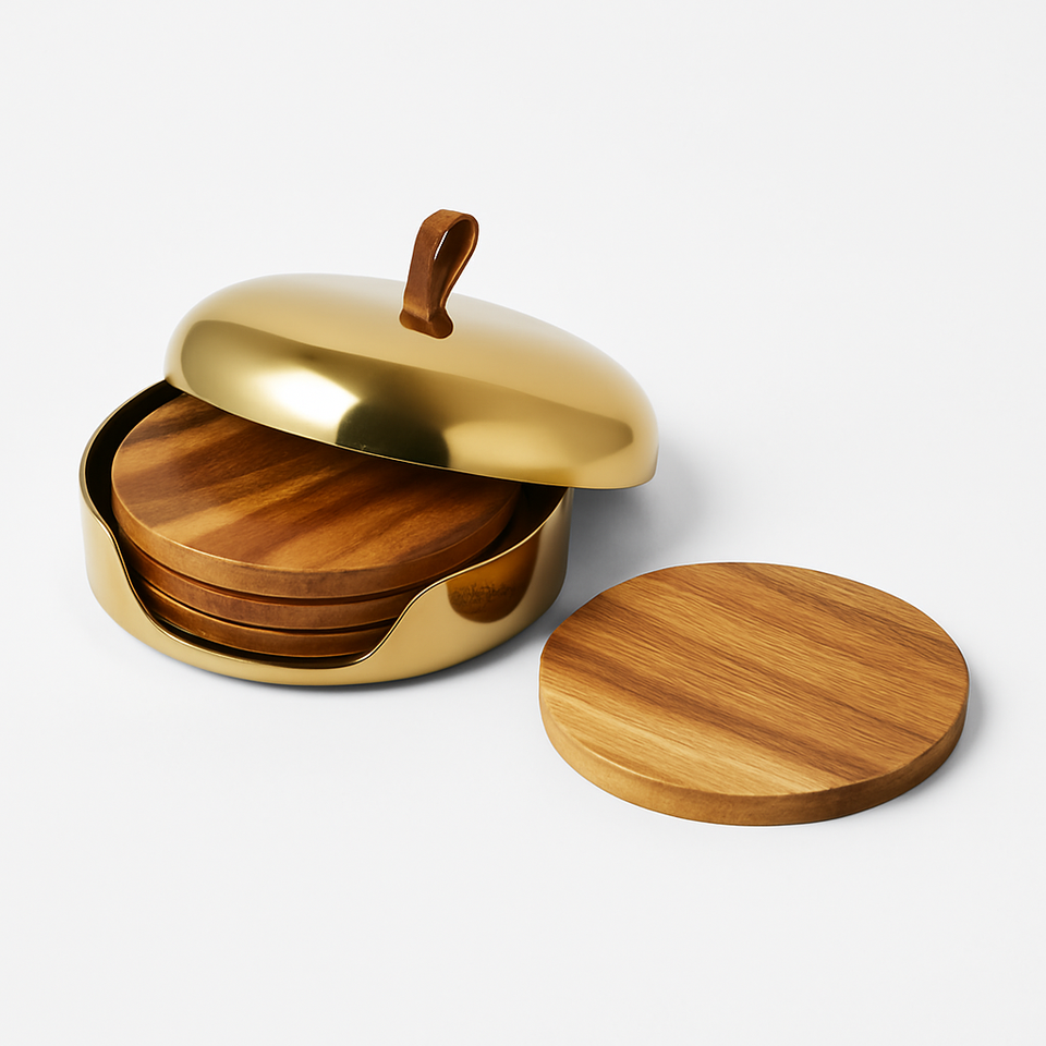 Ensemble de sous-verres en bois avec couvercle en forme de dôme finition dorée coussin de boisson de luxe pour bureau à domicile hôtel cadeau décor de Table support rond résistant à la chaleur