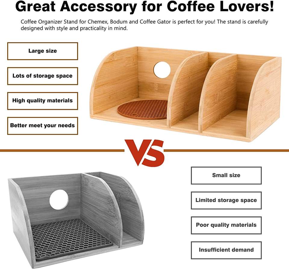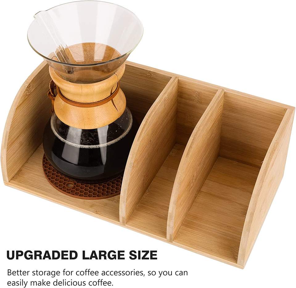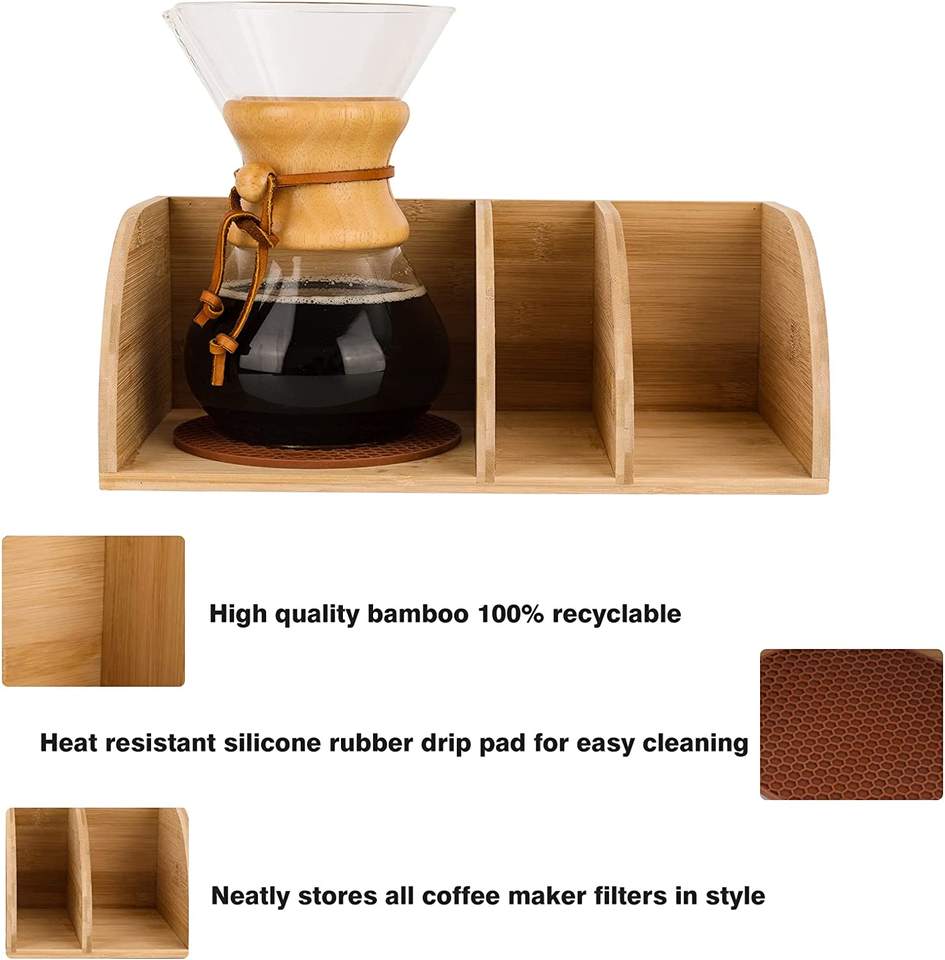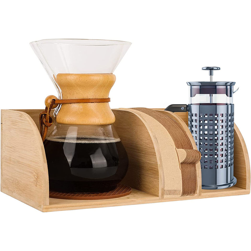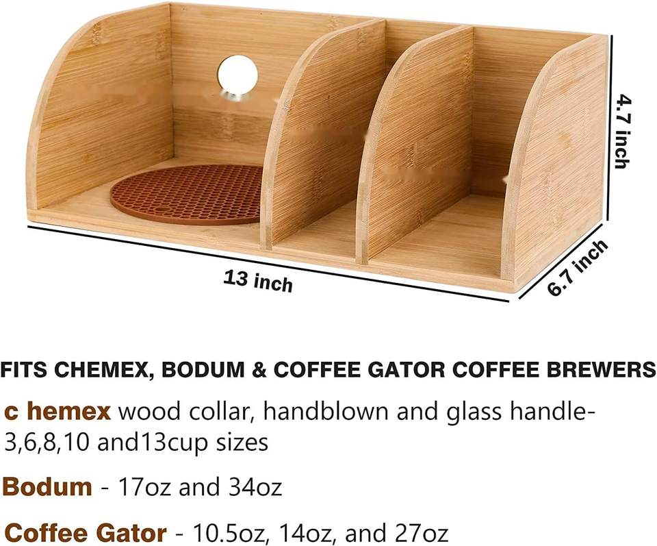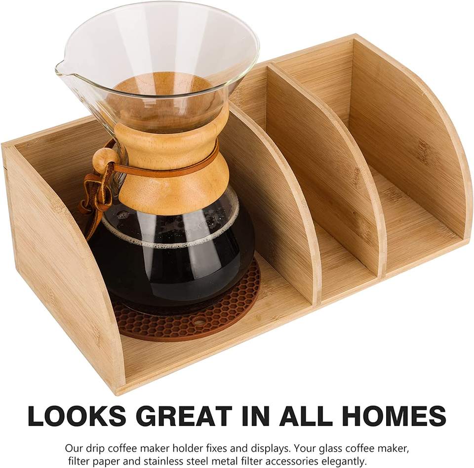 Barre de support d'organisateur de café en bois compatible avec les cafetières Chemex détient des filtres en papier de café s'adapte aux carafes à col et à poignée