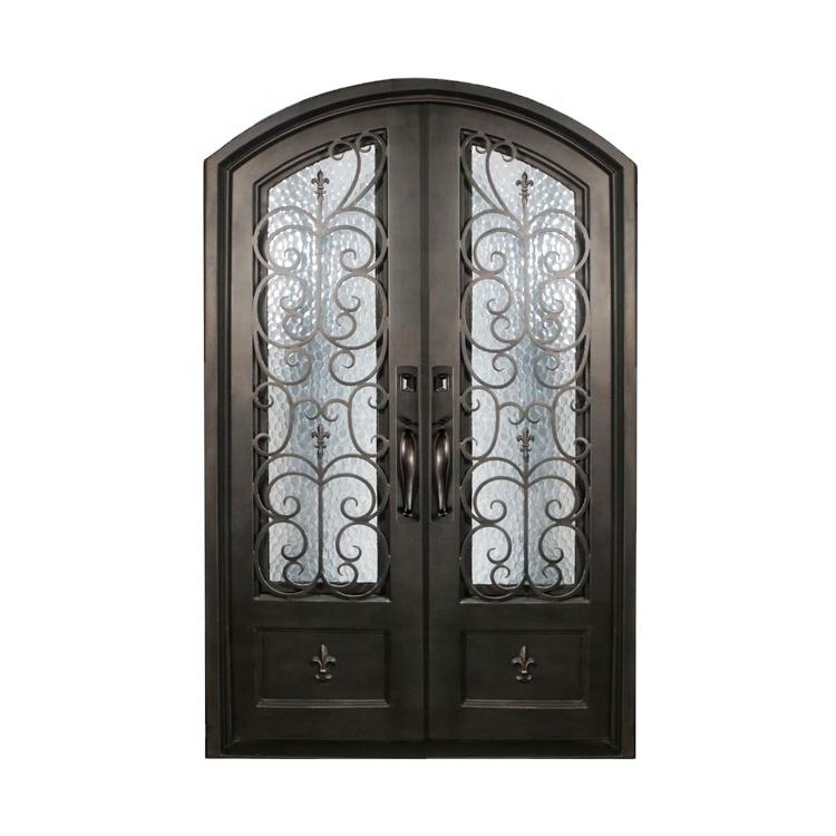 Portes d'entrée en fer forgé couleur bois à rupture thermique