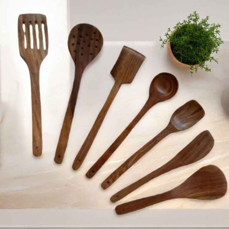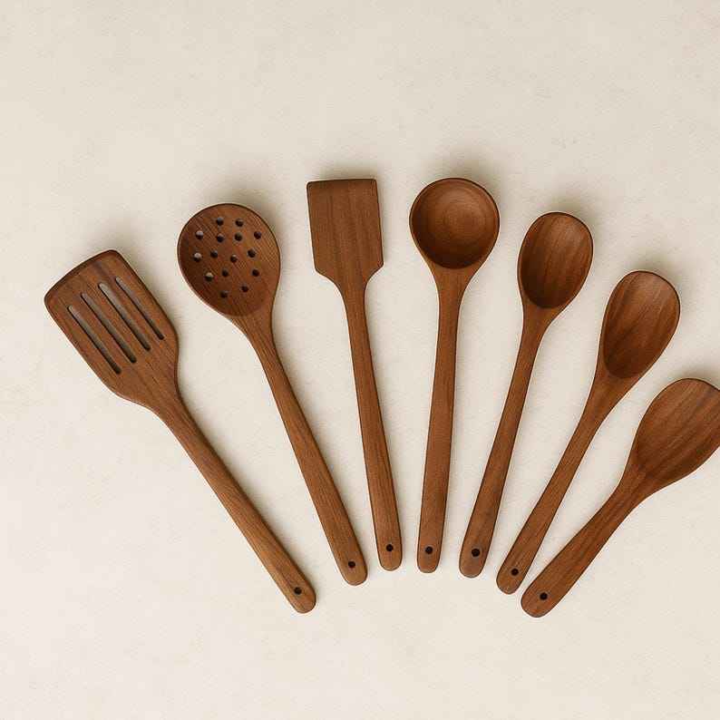 Ensemble d'ustensiles de cuisine en bois avec poêle antiadhésive, design moderne et simple, compatible lave-vaisselle