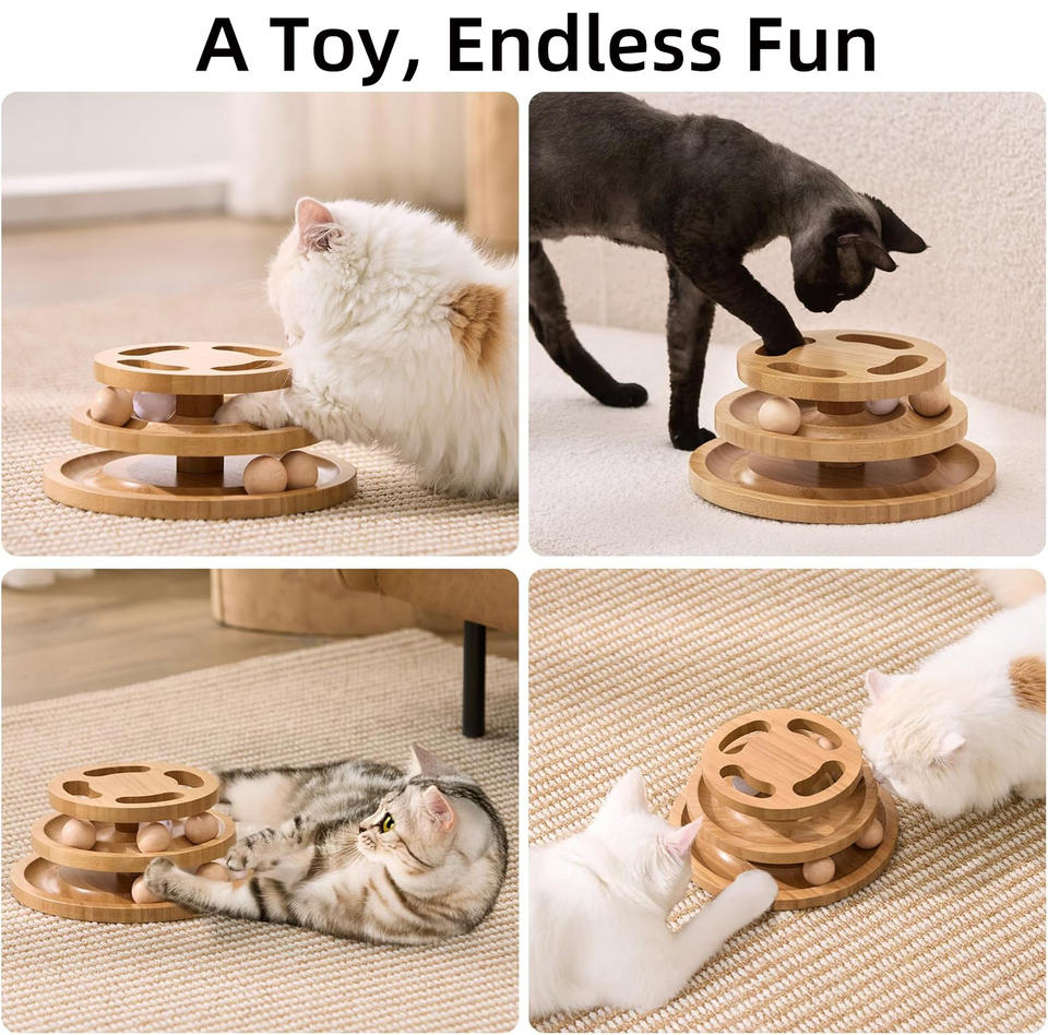 Tour interactive en bois artisanale - Puzzle en bois décoratif pour chat avec boules tournantes