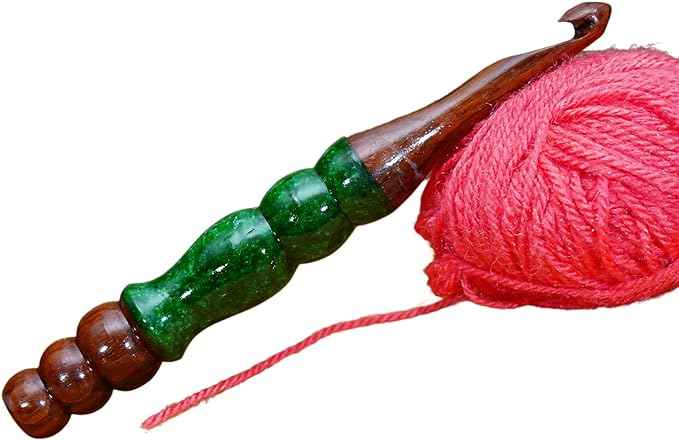 Wooden Crochet Hooks Green Resin Epoxy & Wood Mix Crochet Hooks Ergonomic Soft Handle Needles Knit Weave Craft Yarn Crochet Hook
