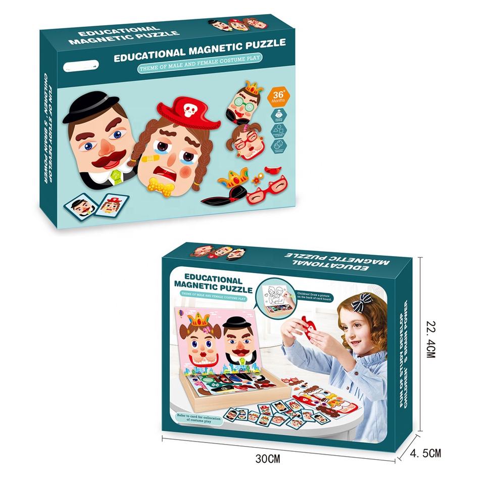 Product name: dressing magnetic puzzle:Educational wooden cross dressing magnetic jigsaw puzzle board box