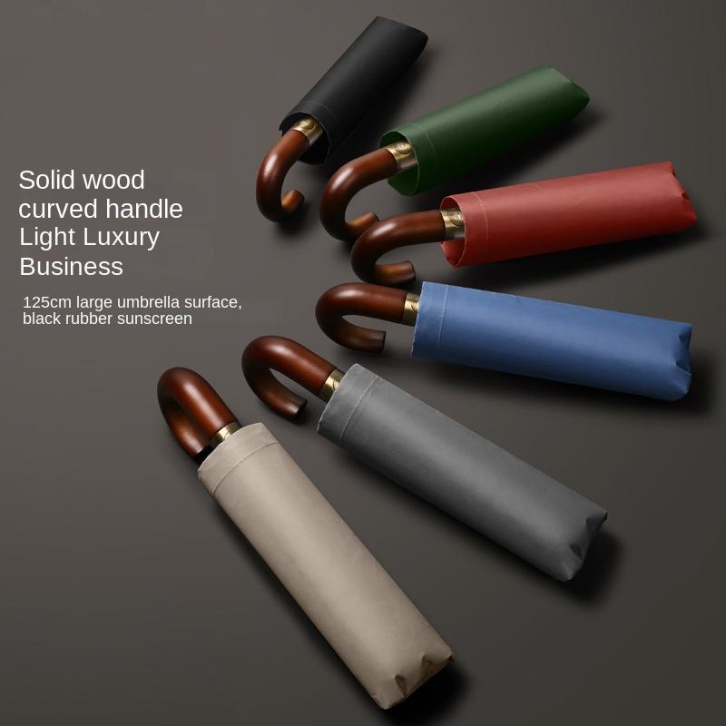 Parapluie d'affaires automatique à ouverture à un bouton avec poignée incurvée en bois et conception à 10 baleines - Vente en gros directe fabricants pour la publicité