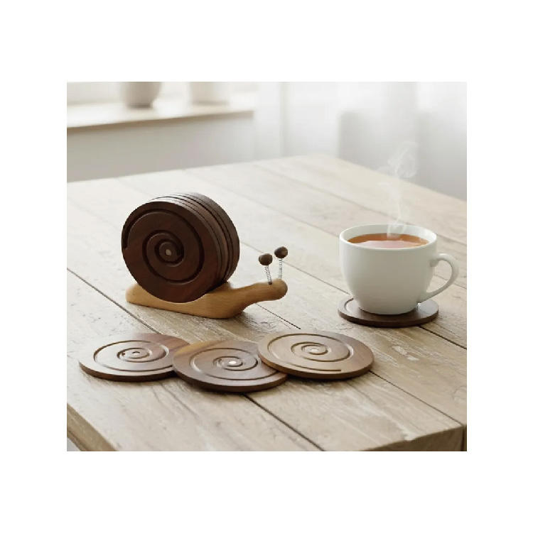 Nom du produit:Ensemble mignon en bois de caboteur d'escargot, tapis handcrafted de boisson