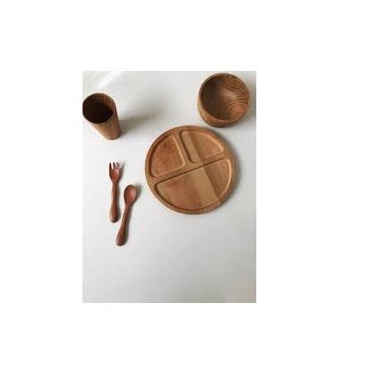 Ensemble de table en bois bol de différentes tailles et fourchette et cuillère de taille personnalisée ensemble de table en bois grande assiette en bois