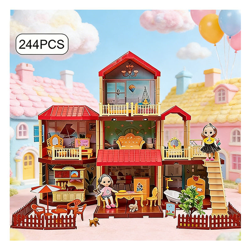 Maison de poupée en plastique à assembler avec meubles, balcon, piscine, toboggan, ascenseur, jeu d'imitation, cadeau unisexe en PVC
