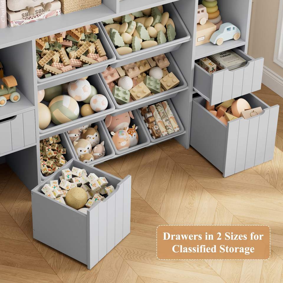 Boîtes à tiroirs en bois Armoires de rangement Bibliothèque à 5 couches Armoires d'organisation de stockage de jouets pour enfants en bois avec tiroirs