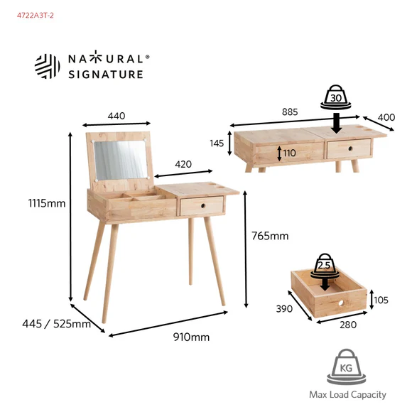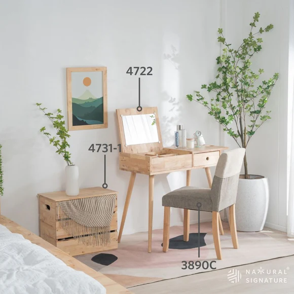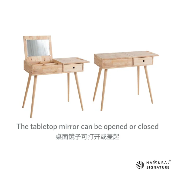 Table à langer en bois avec miroir réglable et rangement pour le maquillage et le sèche-cheveux, fabricant de meubles de premier plan en Malaisie