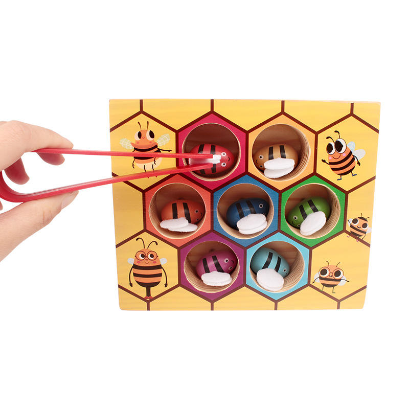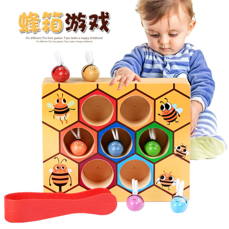 Boîte de ruche de jouet éducatif en bois avec jeu d'association Bee-to-Hive de tri de couleur de pince pour les enfants