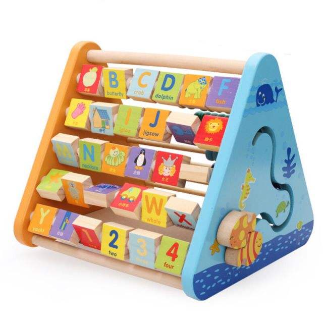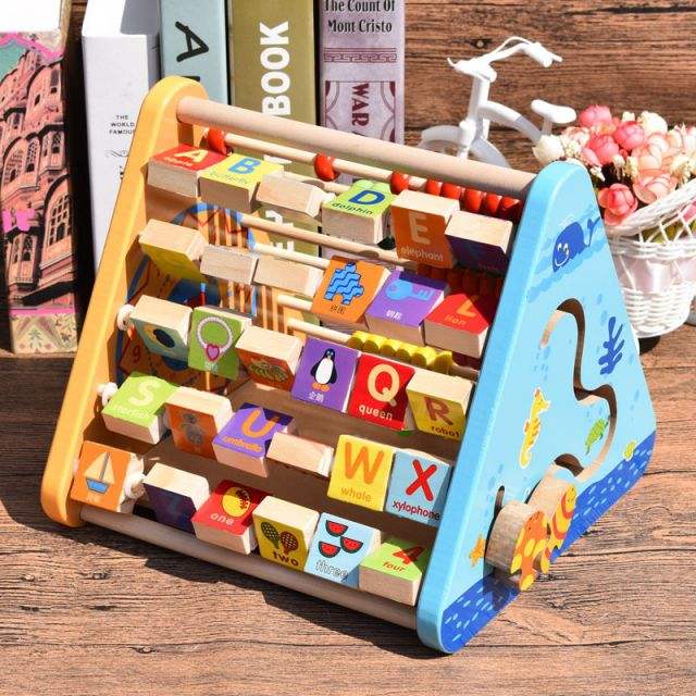 Cadre d'apprentissage en bois à cinq côtés perle cadre de comptage MR alphabet cognitif flip board cadre chevalet jouets d'éducation précoce pour enfants