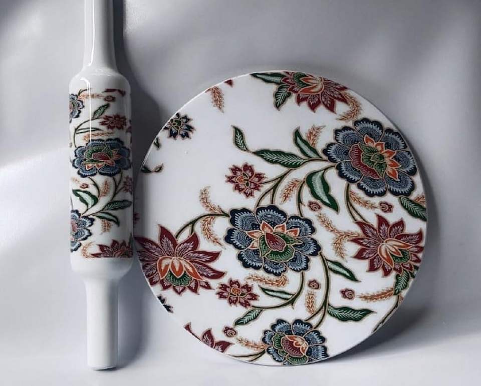 Wooden Floral Printed Chakla Belan Set-Eco-Friendly Kitchen Tool with Customizable Size and Design