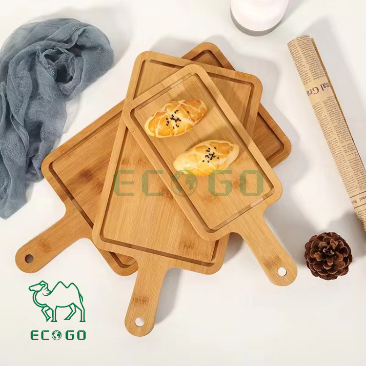 Plateau de nourriture en bois Rectangle en bois Plateau en bois de bambou Personnalisation Plateau en bambou