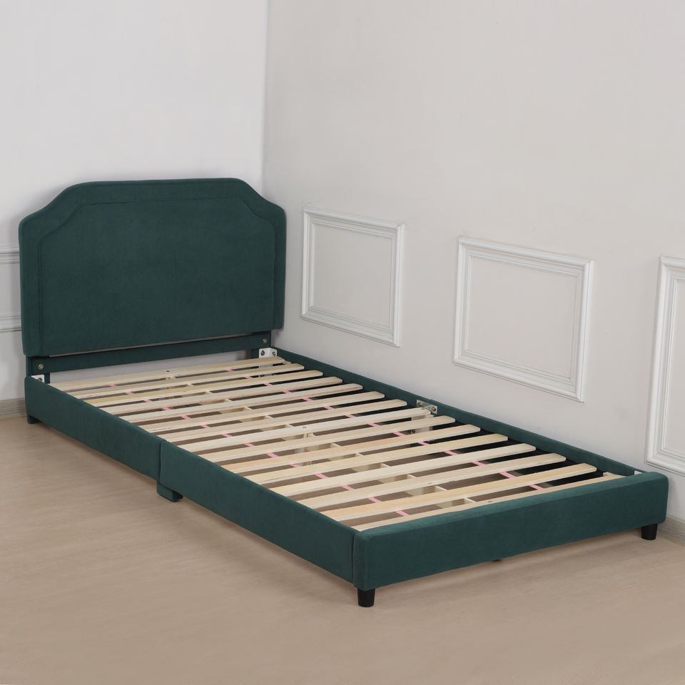 Wooden Frame Kids Bed with Velvet Fabric,Upholstered Children Bed ,Solid Wood Toddler Bed Frame for Children for Bedroom /Hotel