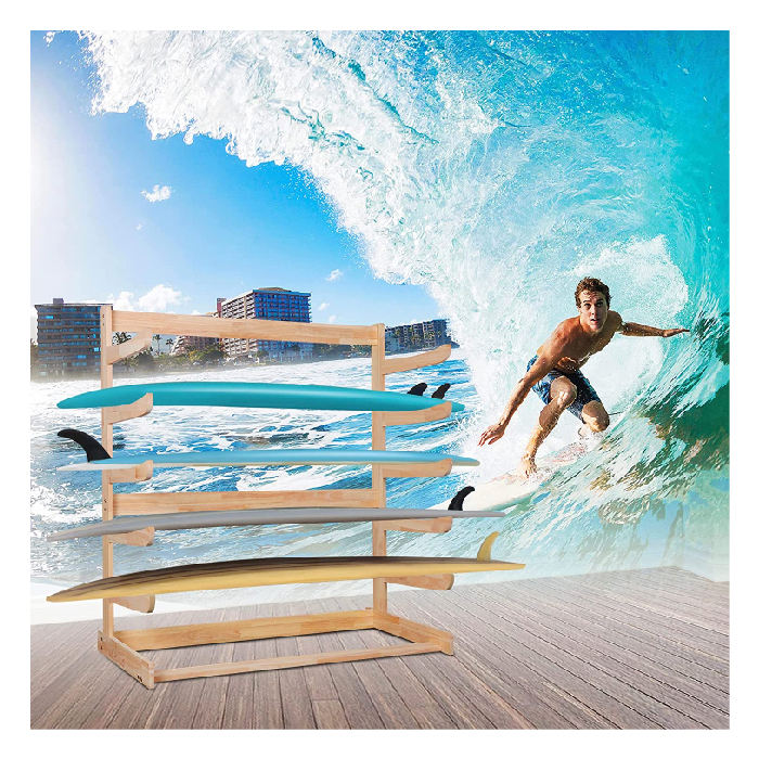Support mural autoportant en bois pour planche de surf 6 planches