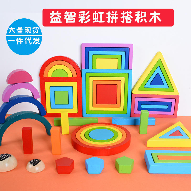 Jouets de construction géométriques en bois arc-en-ciel pour bébés et tout-petits, puzzle éducatif à faire à la maison