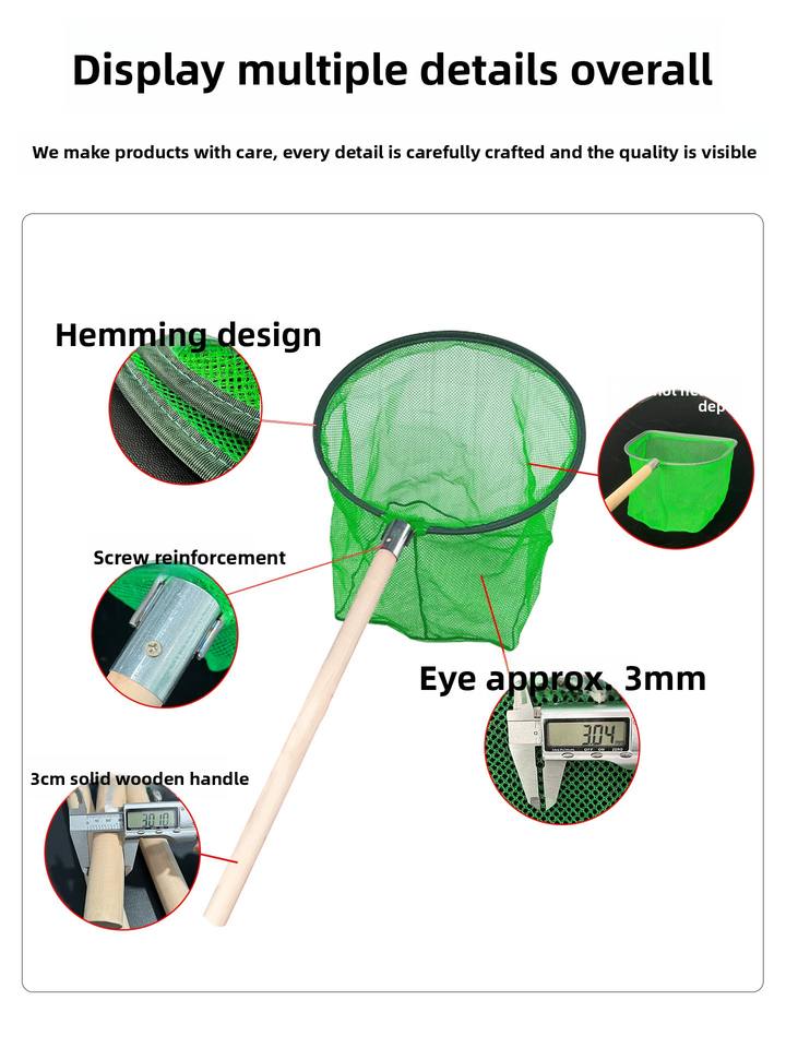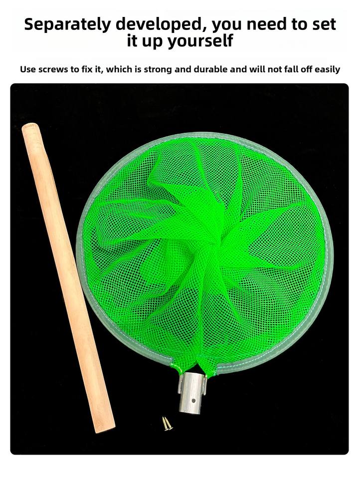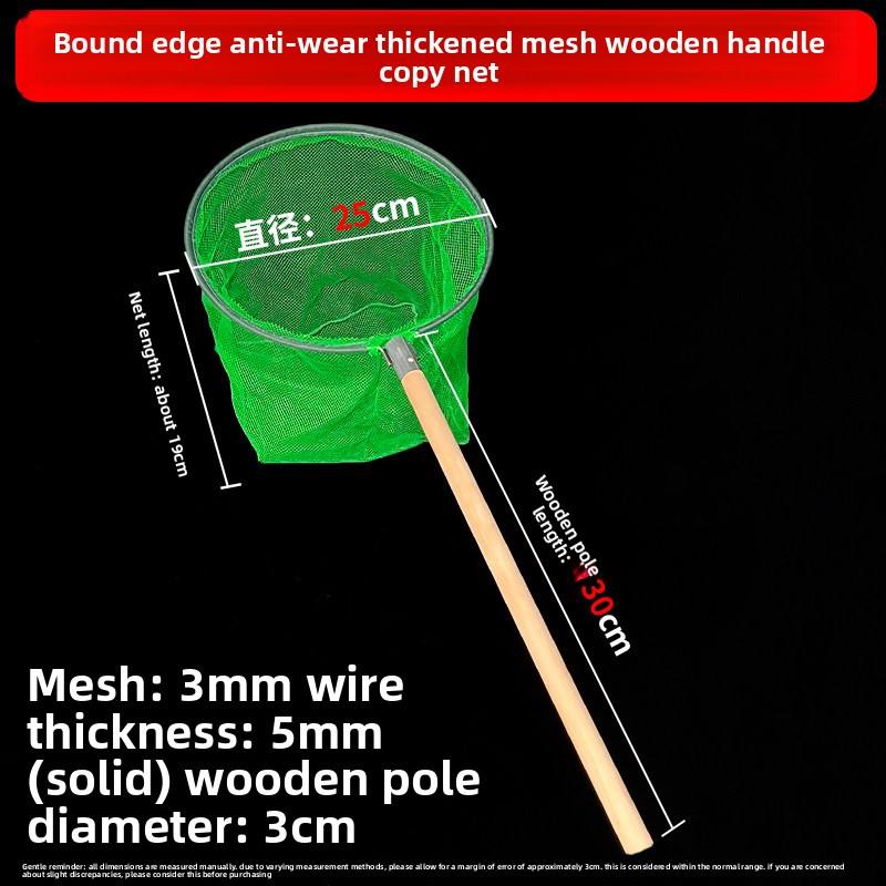 Épuisette en fer galvanisé à manche en bois, à mailles fines et épaissies, pour la capture de poissons et d'algues dans les étangs et les réservoirs