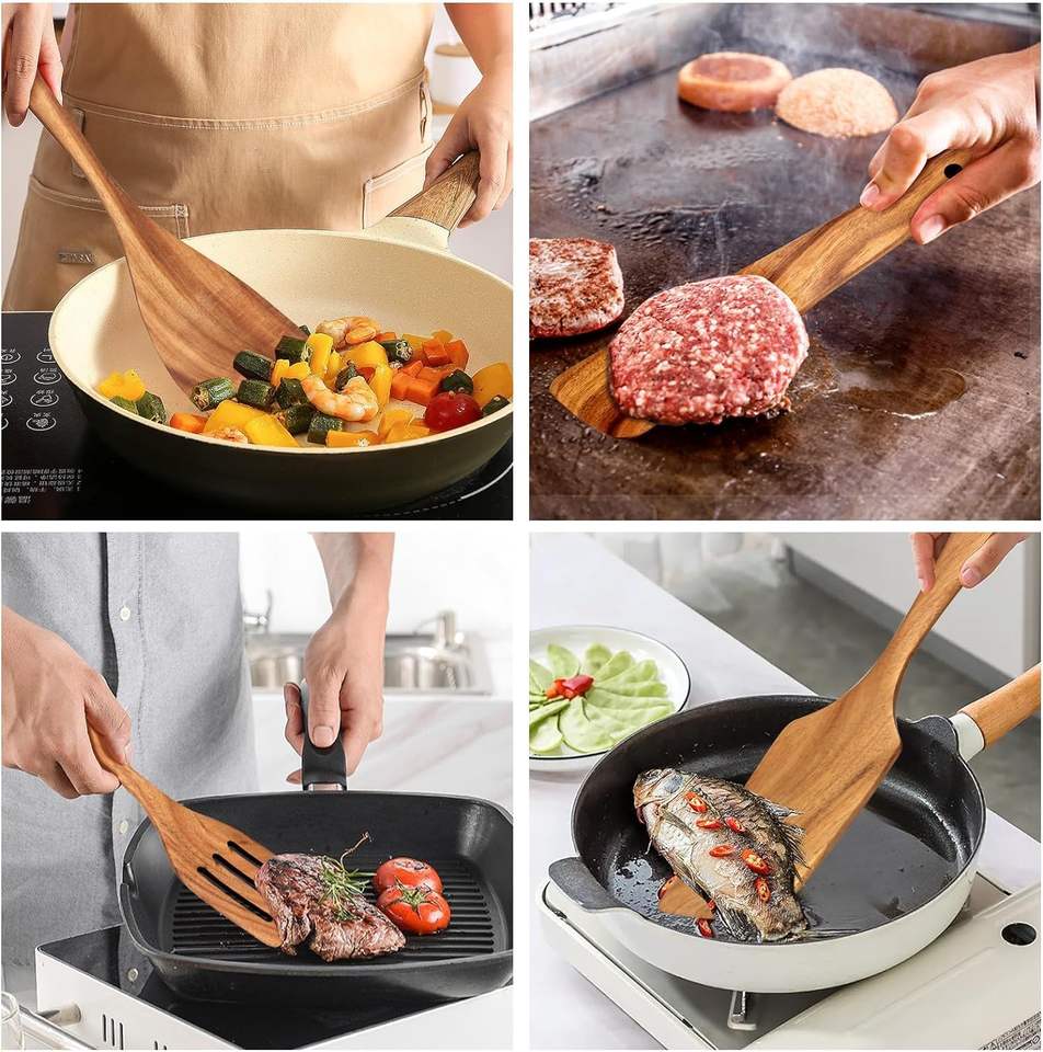 Manche en bois Cuillères de cuisine Accessoires de spatule Porte-ustensiles de cuisine Bois d'acacia foncé Teck Logo personnalisé Ustensiles de cuisine