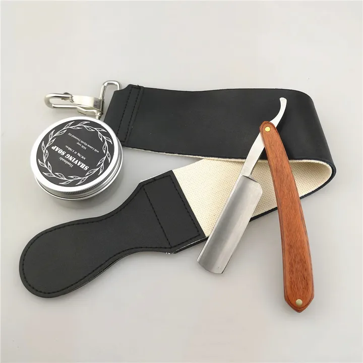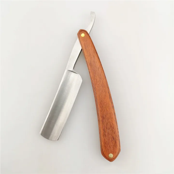 Manche en bois Salon rasoir droit ménage hommes manuel rasoir visage rasoir pour homme