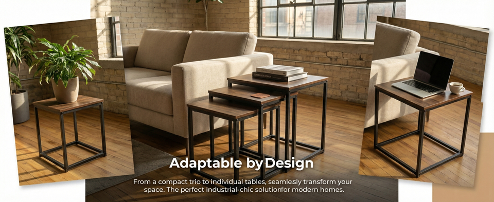 Table basse gigogne moderne en bois faite à la main - Base mobile pour chambre et hôtel, design durable et écologique