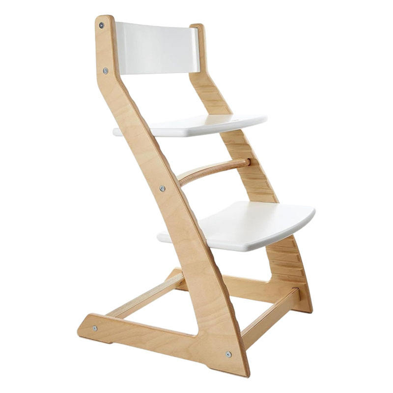 Chaise haute en bois | Siège pour tout-petit réglable et évolutif | Parfait pour les cuisines modernes et minimalistes, bois naturel et blanc