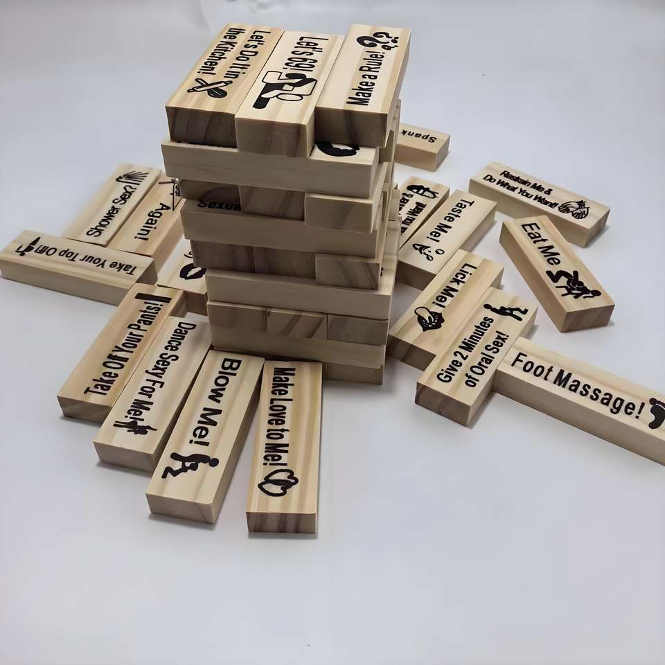 Jeu de construction en bois classique : Tour instable à empiler, jeu de blocs de construction en bois pour table