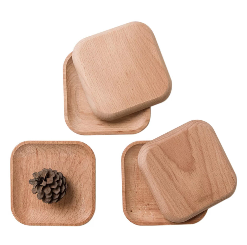 Ustensiles de cuisine en bois assiette à feuilles plateau forme ronde plats en bois et assiette pour vaisselle nourriture viande Snack avec vente