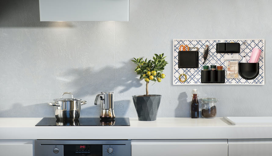 Kit d'organisation murale en bois MDF avec panneau perforé et étagère d'affichage adhésive