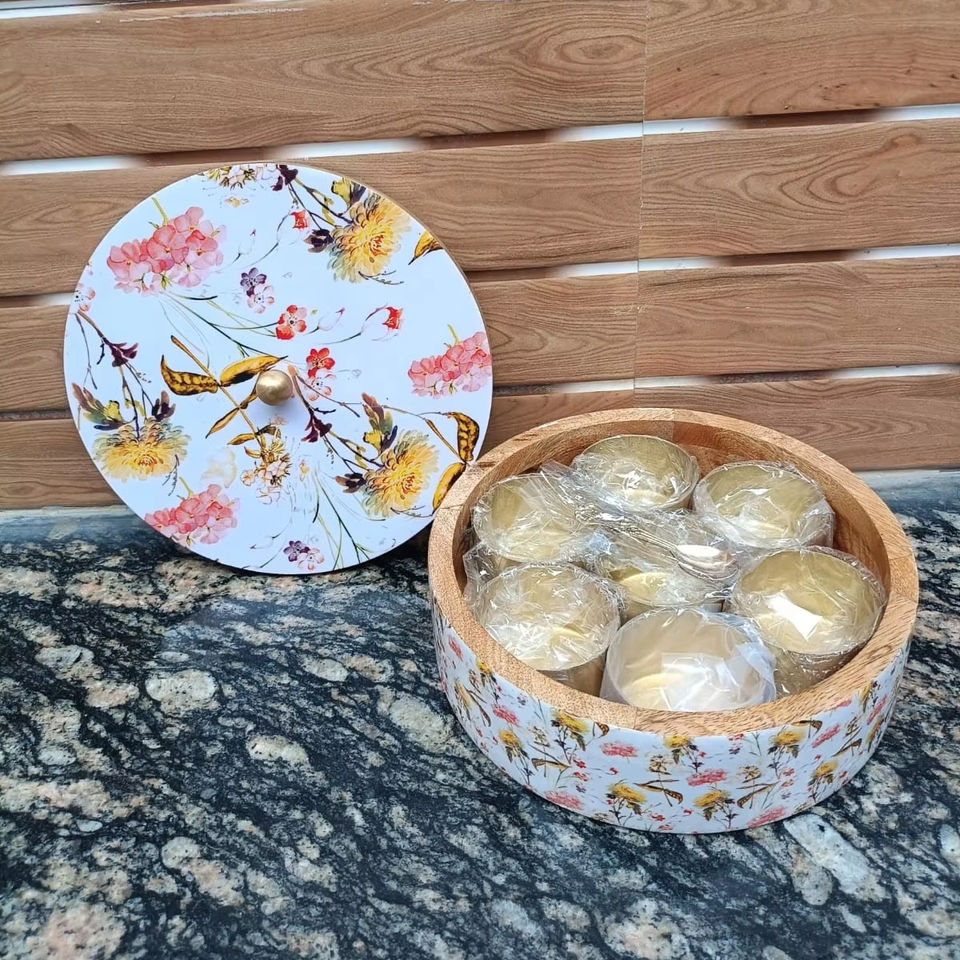Boîte à épices en bois imprimé faite à la main avec un design traditionnel, boîte à masala en bois imprimé décorative pour le rangement de la cuisine, boîte à épices