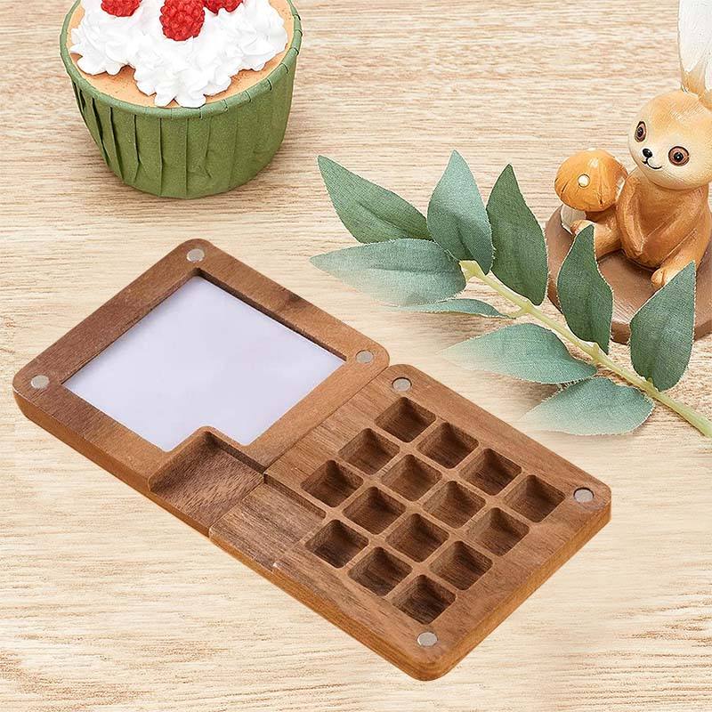 Wooden Mini Travel Paint Palette 15 Grids Magnetic Palette Box for Watercolor Painting Paint Saver with Lid and Mixing Tray