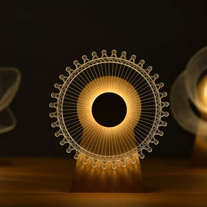 Boîte à musique rotative moderne en bois avec LED, cadeau créatif, lampe de chevet à éolienne rechargeable par USB, décoration d'intérieur