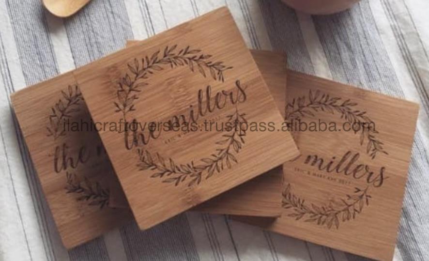 Dessous de verre ronds écologiques naturels en bois avec gravure de haute qualité