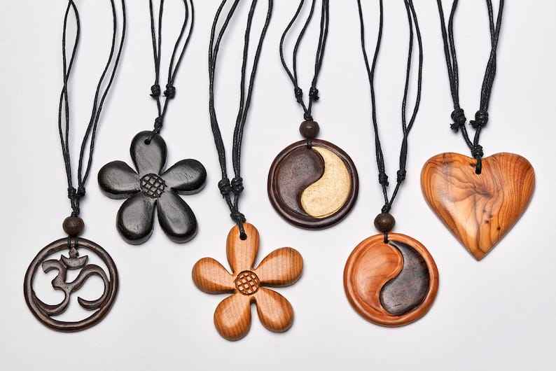 Colliers en bois faits à la main avec des perles de bois naturelles, conçus pour un usage quotidien, look traditionnel et mode simple