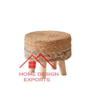 Tabouret latéral pouf en bois avec coussin tissé en corde bouffée tabouret fini en bois gris massif et naturel pour la maison hôtels et restaurants