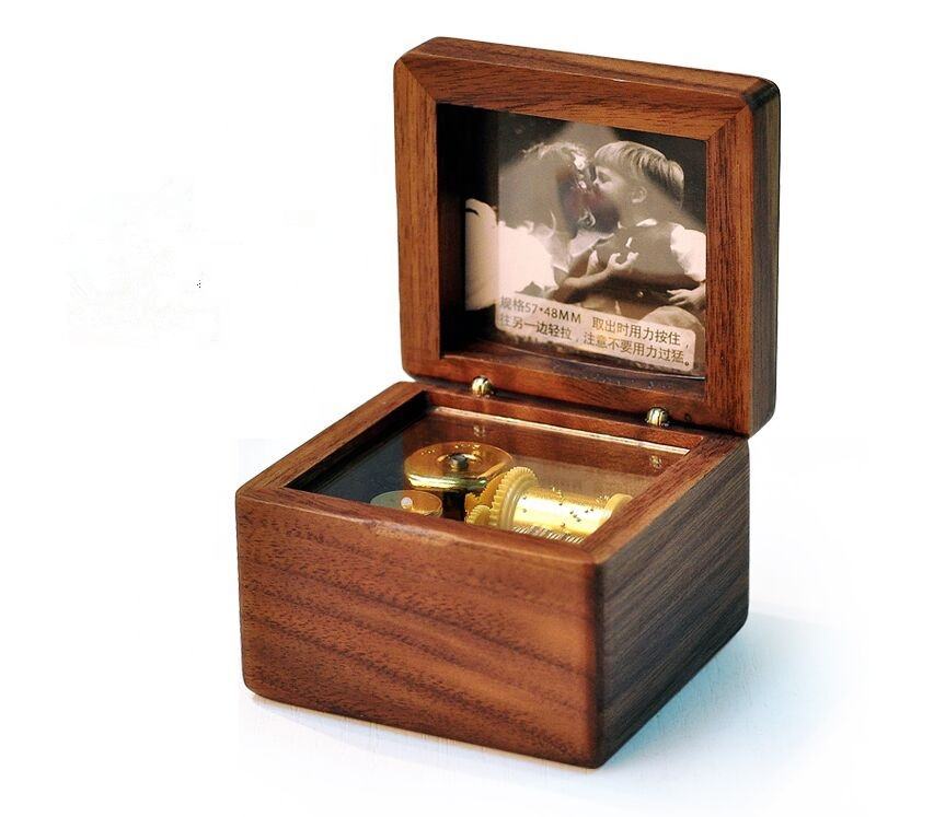Boîte à musique Photo en bois bois de noyer boîte à musique mécanique personnalisable été joyeux anniversaire vous êtes mon soleil La Vie En Rose