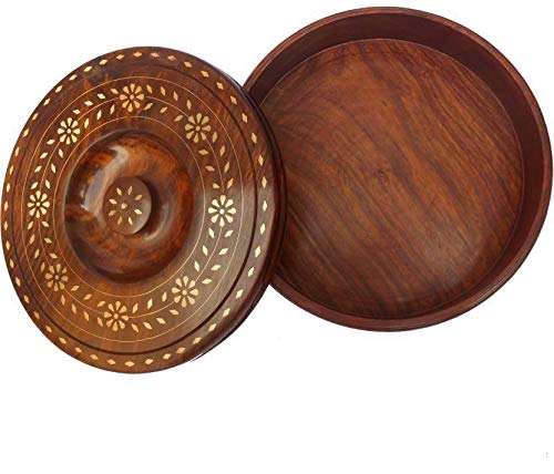Pot en bois poli antirouille avec capuchon en métal marmite pour aliments servant des ustensiles de cuisine utiliser forme ronde Premium Look nouveau Design
