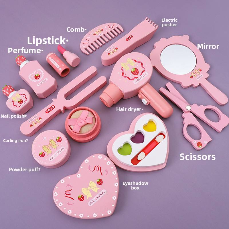Ensemble de jouets de maquillage princesse en bois pour filles enfants semblant jouer coiffeuse avec cadeau de cosmétiques simulés pour les petites fashionistas