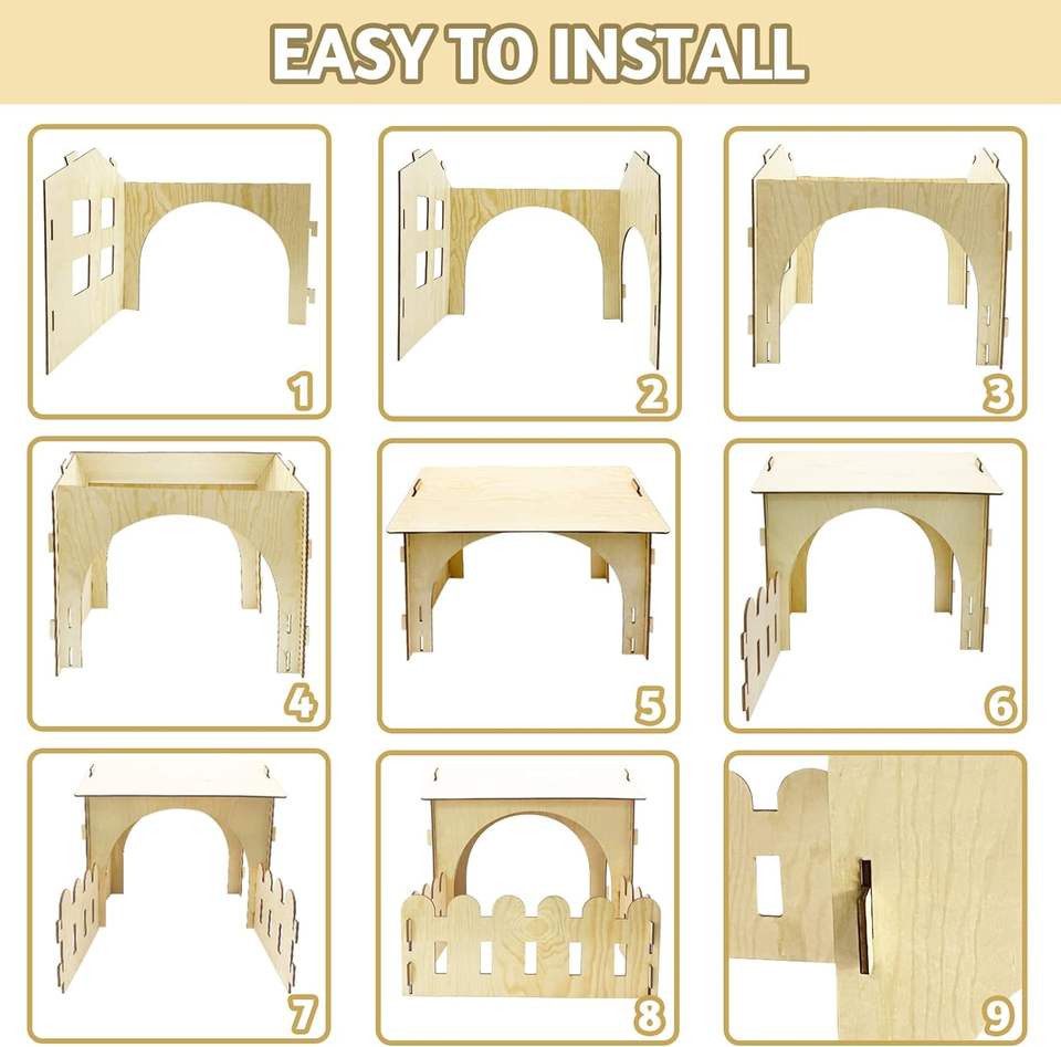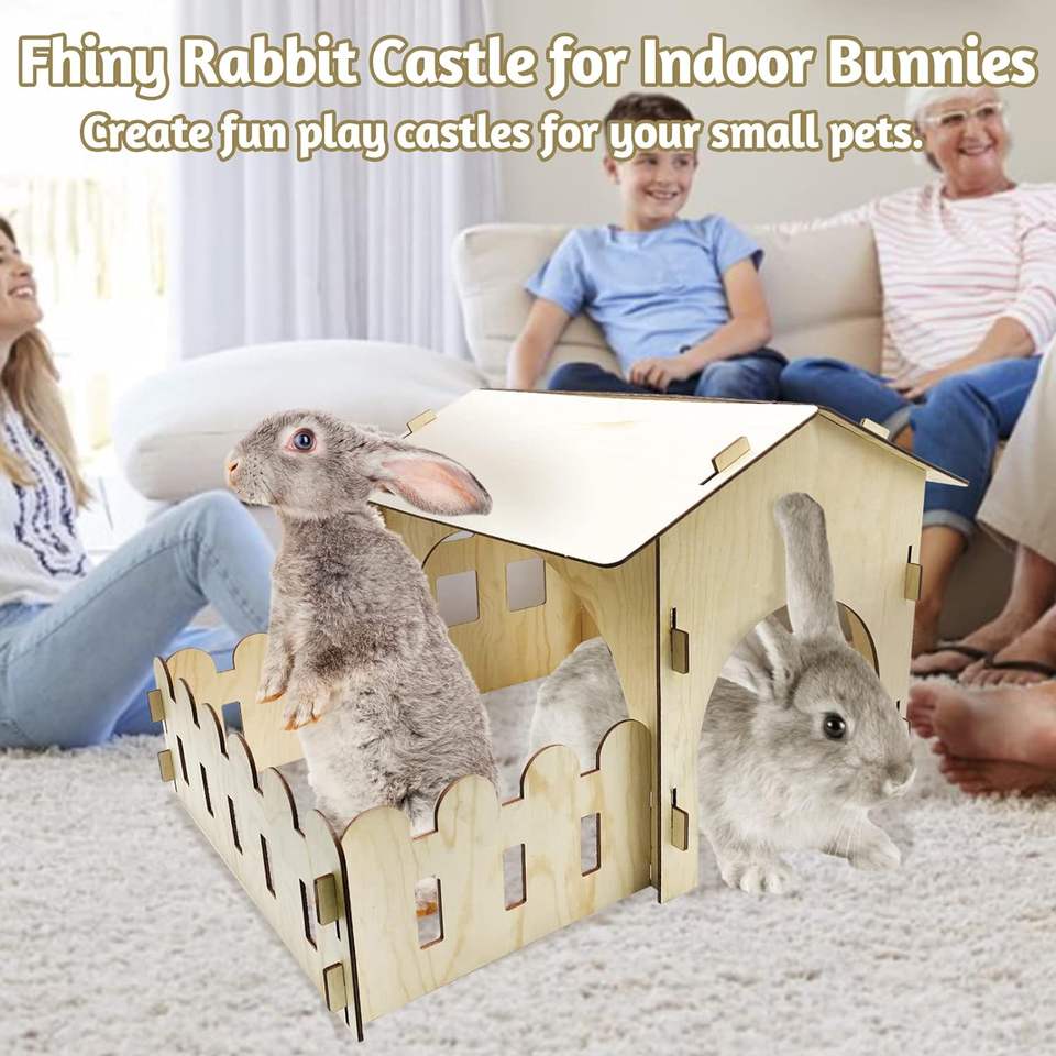 Château de lapin en bois cachette avec clôture petit Animal jeu maison cachette avec fenêtre amovible lapin lit cabine lapin château