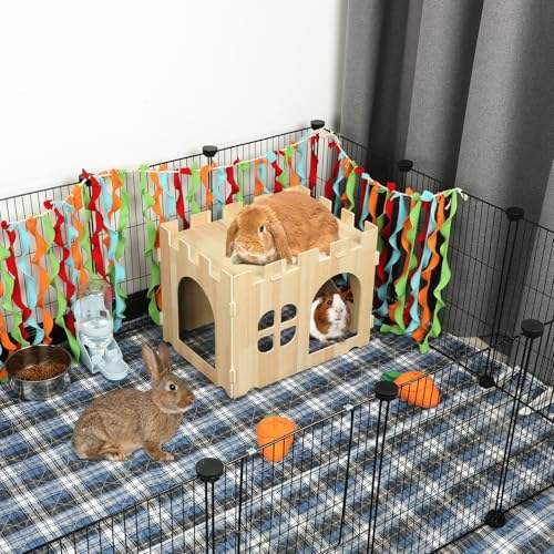 Maison et cachettes en bois pour lapins, château pour lapins, détachable, jeu pour petits animaux, cachette pour lapins, accessoires de cage