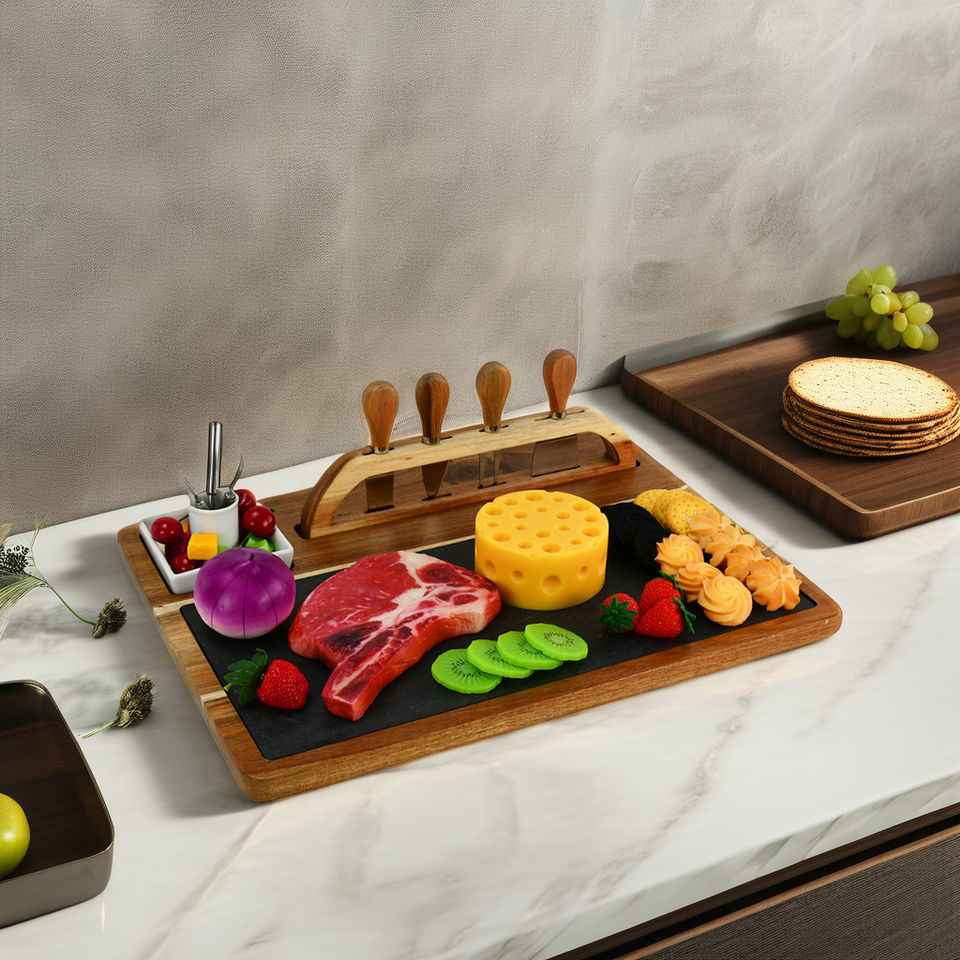 Nom du produit:Planche à fromage charcuterie en bambou avec accessoires de couteaux à fromage